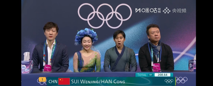 赛后,隋文静韩聪拥抱致意,并互相道别。这是属于他们的时刻,北京冬奥会的金牌,多个世锦赛与四大洲的金牌,足以让他们载入史册。