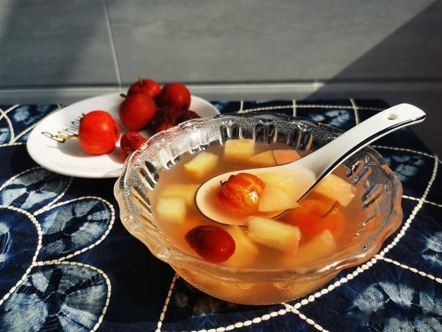 3. 苹果山楂水:苹果和干山楂片一起煮,酸酸甜甜很开胃。平时爱吃肉、饮食油腻的朋友,喝它能解腻降脂,让肝脏少受累。