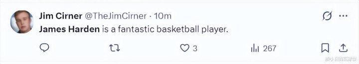 美记Jim Cirner:哈登是一位非常出色的篮球运动员。